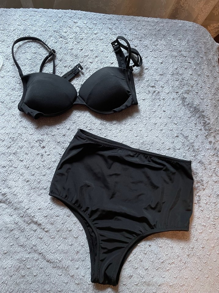 Siyah, strappy detaylı, kısa mini boy bikini takımı. Günlük kullanım için goth athleisure tarzında, şık ve rahat bir seçim.
