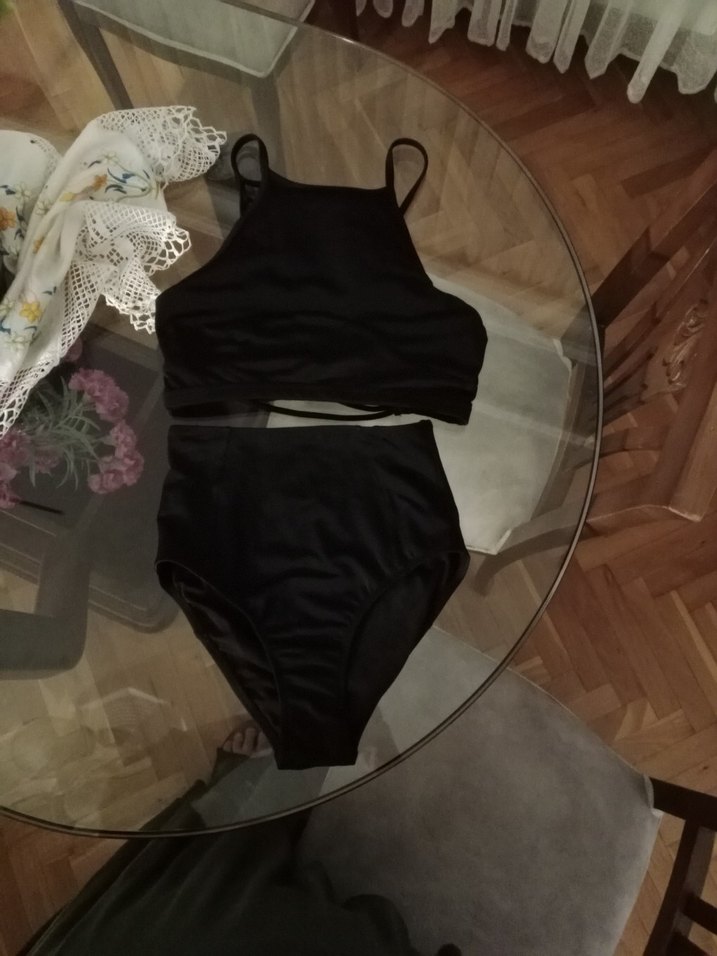 Siyah, dar kesim kadın mayo, askılı ve mini uzunlukta, gotik tarzda, zahmetsiz şıklık sunar. Plaj için uygun.