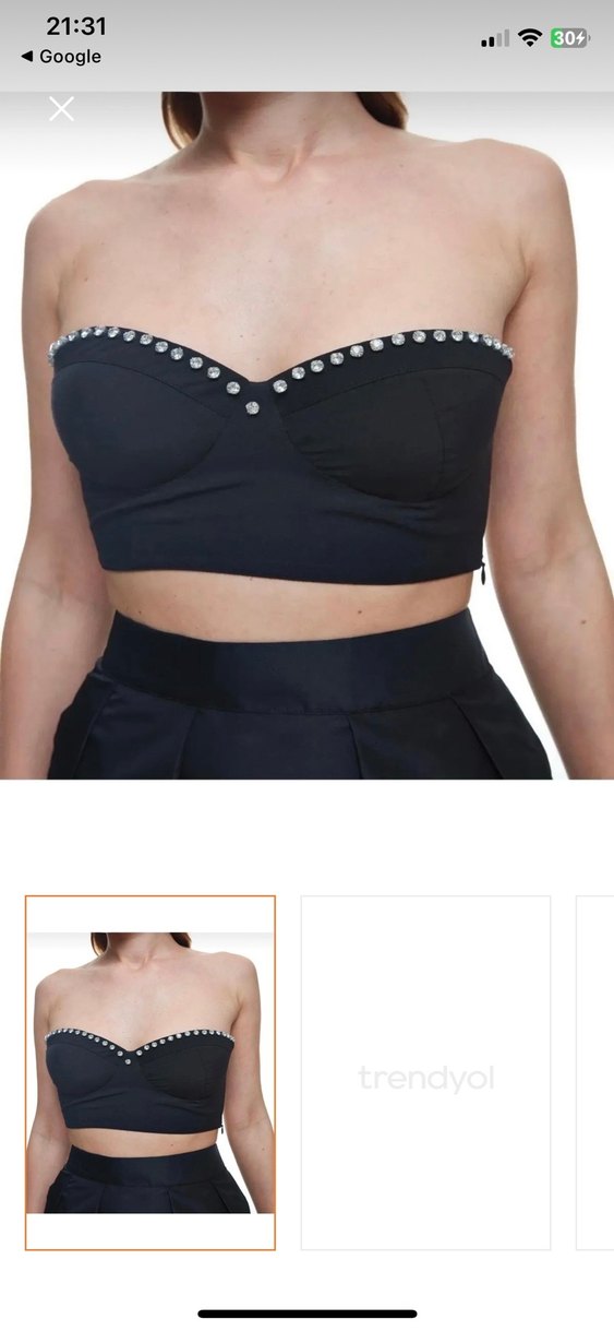 Siyah, dar kesim, straplez bustiyer, askılı ve düğmeli detaylı, sentetik kumaştan. Parlak ve göz alıcı parti kombinleri için uygun. ✨