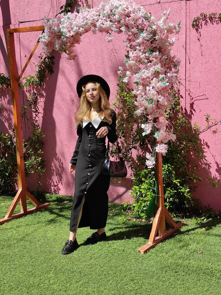 Siyah uzun elbise, yaka detaylı ve askılı kollu, rahat kesim ve zahmetsiz şıklık sunar. Sentetik kumaştan, dış mekan kullanımı için uygundur.