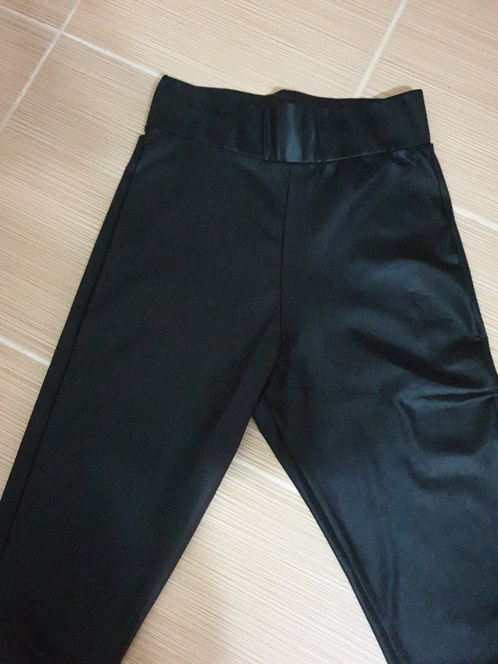 Siyah, esnek sentetik kumaştan yapılmış, günlük kullanım için elastik bel bantlı, dar kesim kadın tayt. Trendy ve rahat bir görünüm sağlar.