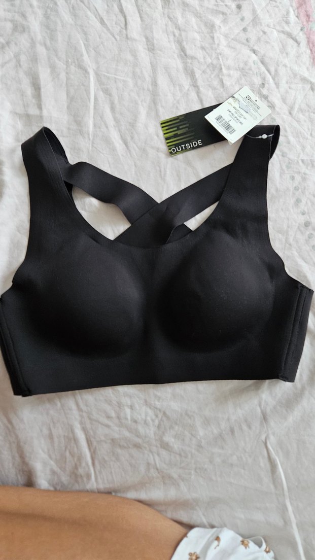 Siyah renkli, çapraz askılı ve orta uzunlukta olan bu spor sütyeni, street wear tarzına uygundur ve desen içermez.
