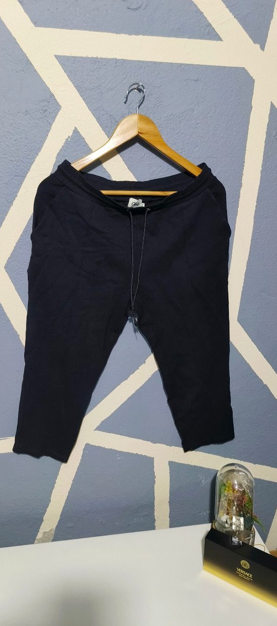 Siyah, rahat kesim, midi boy eşofman. Yumuşak ve sıcak kumaştan, dış mekan için şık ve rahat bir seçenek.
