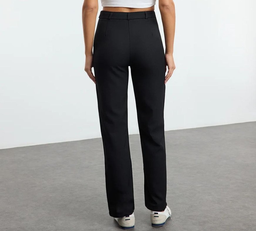 siyah stright/düz kesim yüksekbel nervür dikişli dokuma pantolon