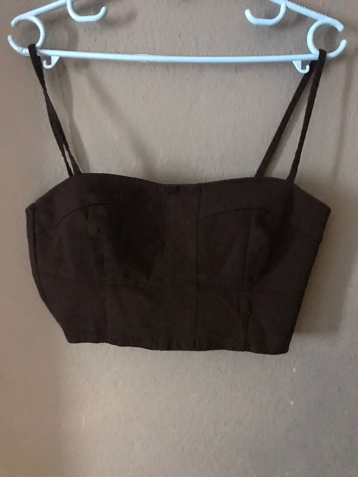 Fitted kesim siyah süet bustiyer, askılı kol ve tekne yaka ile minimalist goth tarzını günlük kullanıma sunar.