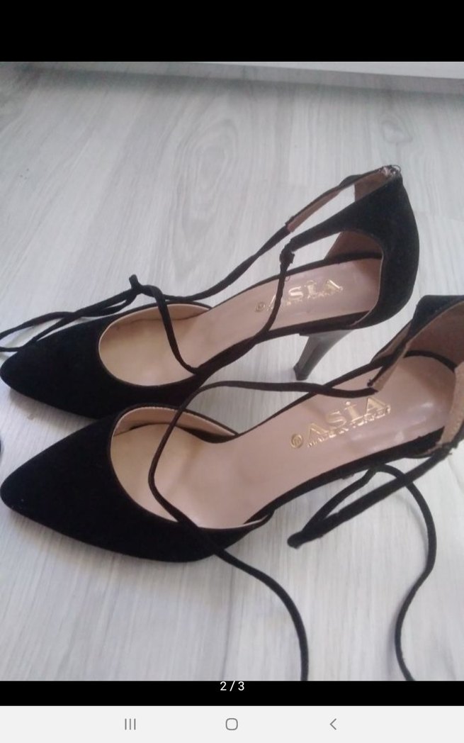 Siyah Süet Bağcıklı Stiletto Topuklu Ayakkabı