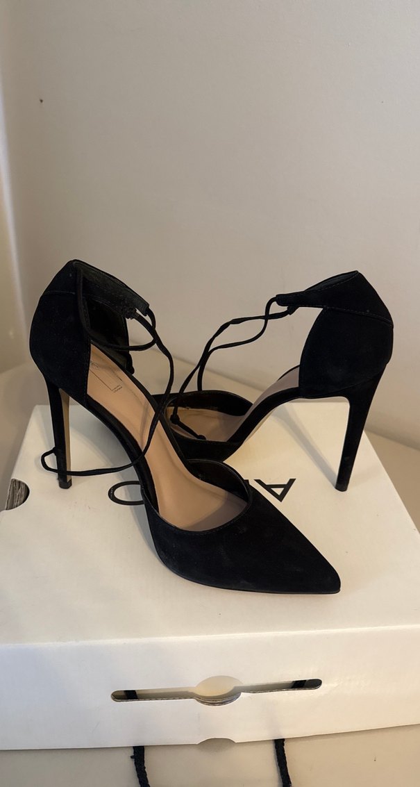 Siyah Süet Bağcıklı Stiletto Topuklu Kadın Ayakkabı