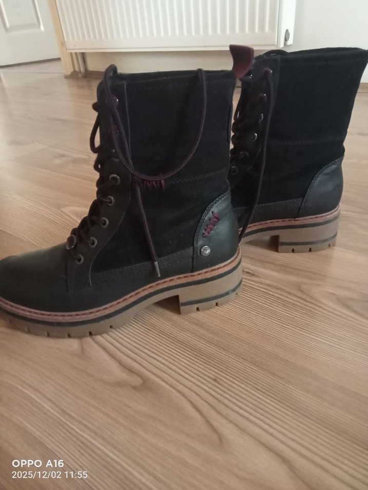 Siyah Süet Bağcıklı Topuklu Kadın Bot sıfır ayarında