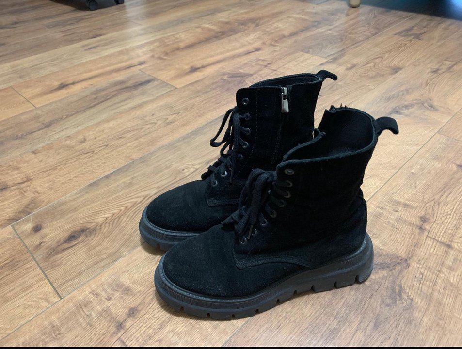 Siyah süet malzemeden yapılmış, blok topuklu goth tarzı ve grunge punk havası taşıyan botlar. Günlük kullanım için uygun, zahmetsiz şıklık sunar.