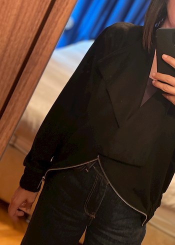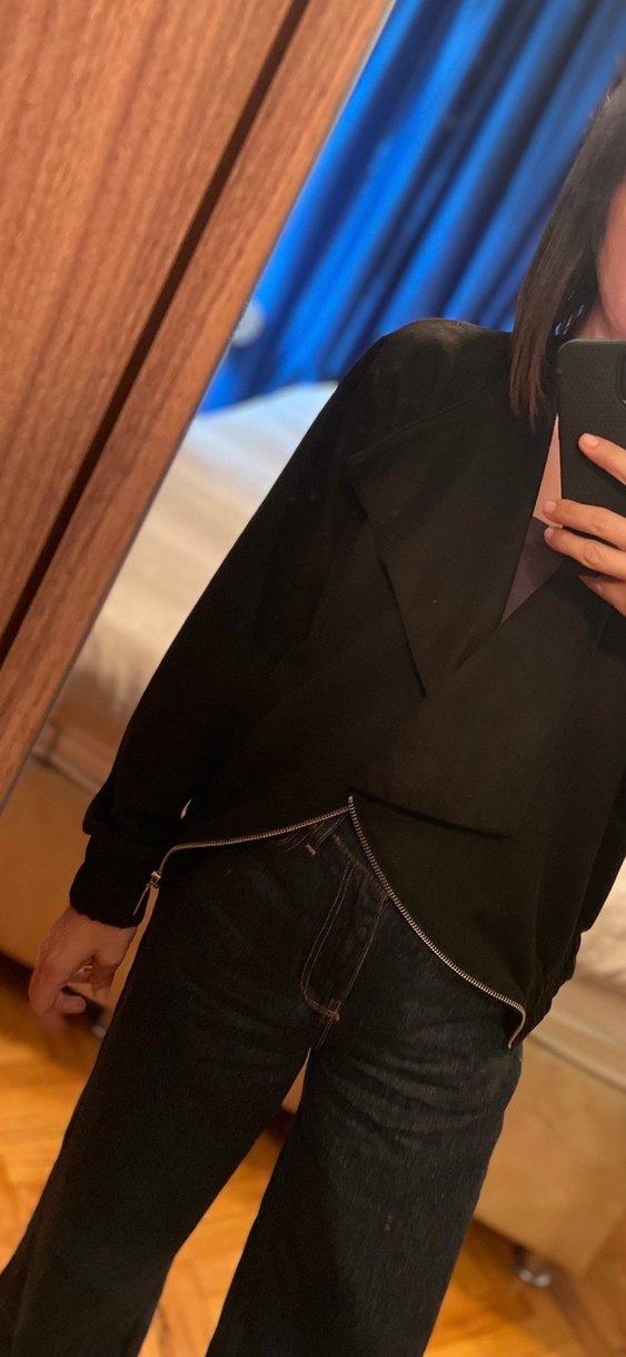 Siyah süet ceket dökümlü yaka çapraz fermuarlı