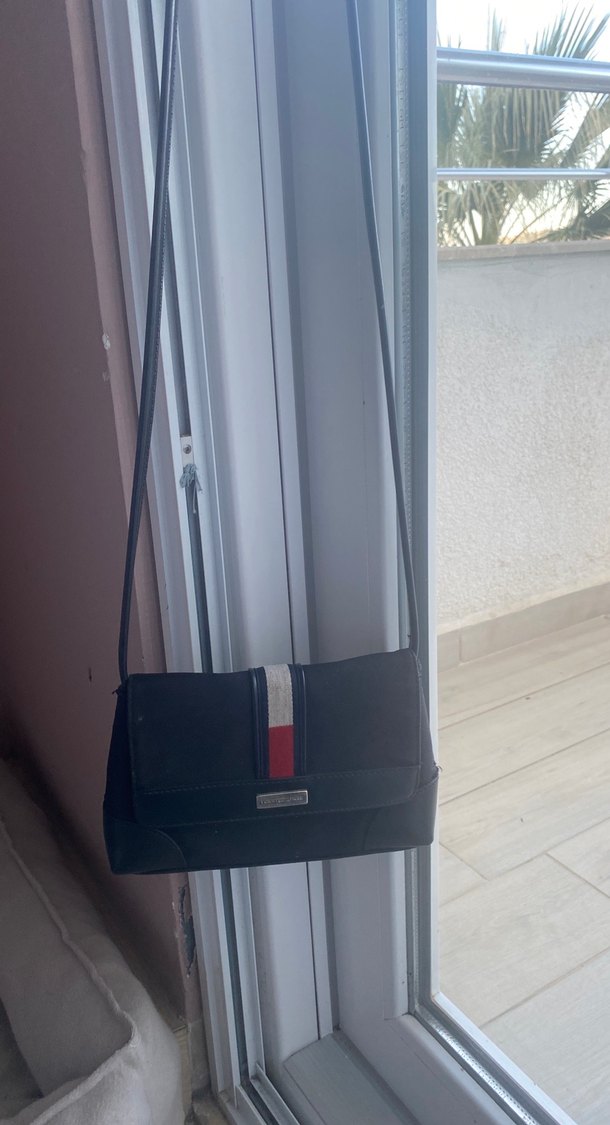 Siyah süet malzemeden yapılmış, çizgili ve kemerli kadın çantası, klasik şıklık ve günlük sokak stili için uygundur. Olculerı 19x14x4,5 orijinal tertemiz
