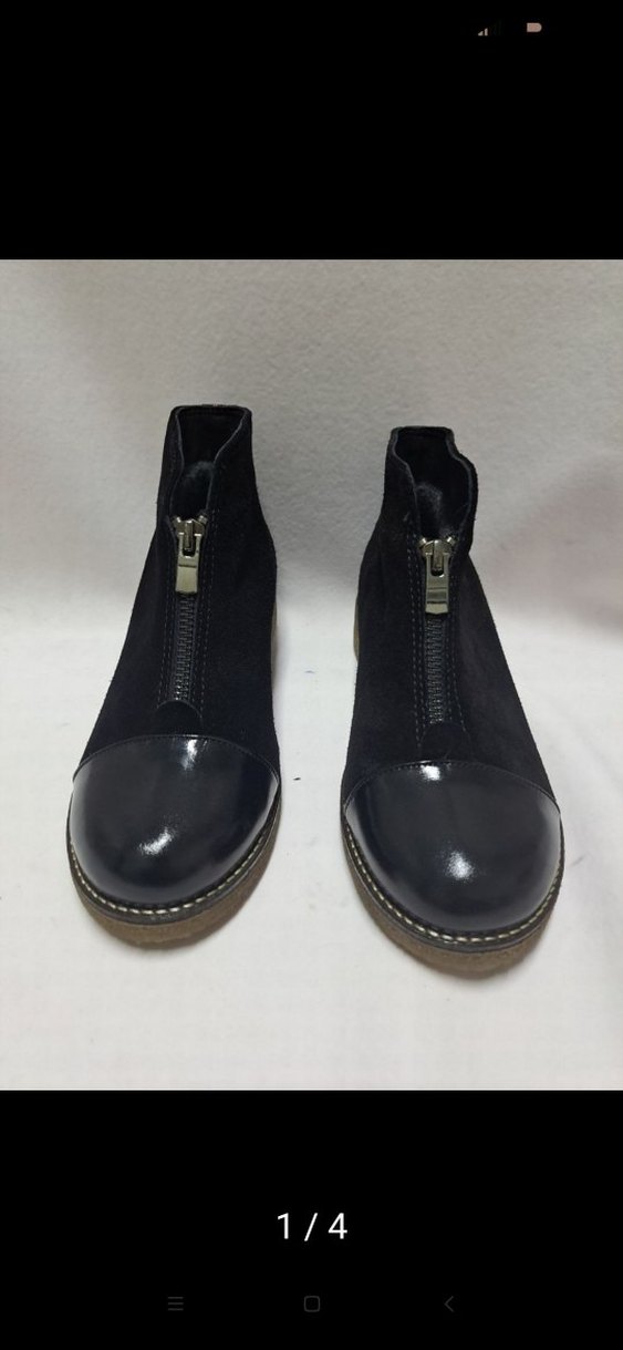 Siyah süet malzemeden, dolgu topuklu ve ön kısmı fermuarlı kadın botu. Minimalist ve normcore tarzıyla günlük kullanıma uygun. kaliteli işçilik ve malzeme