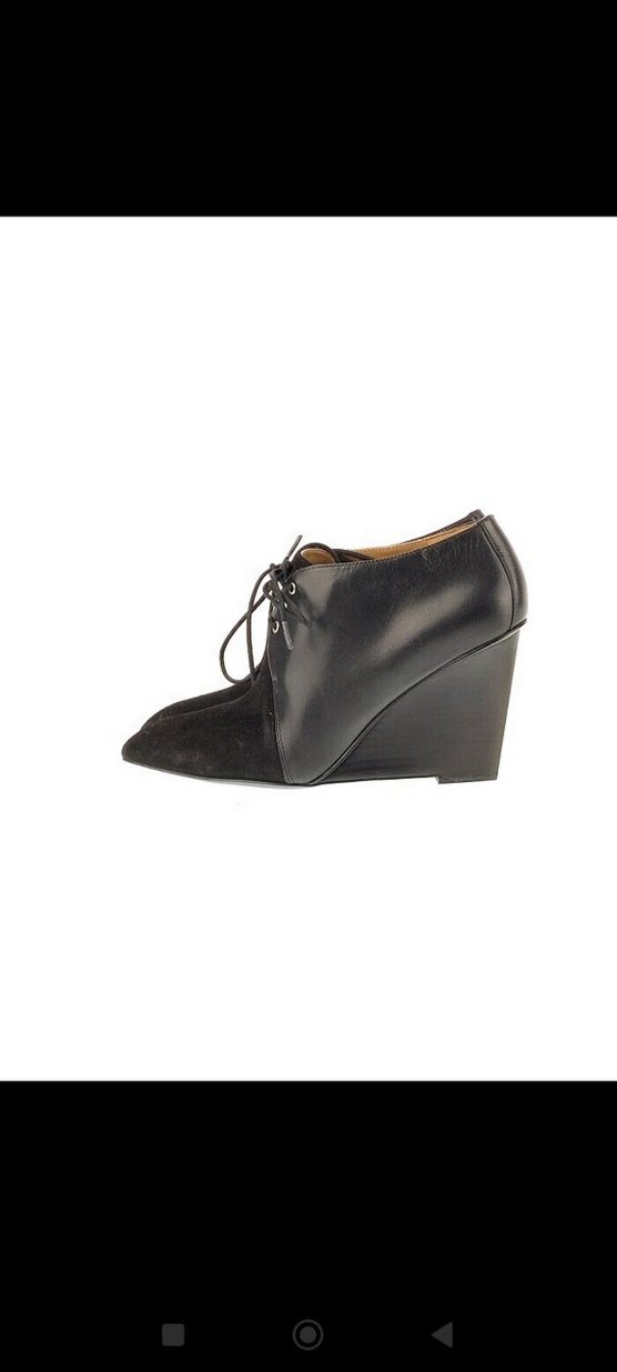 Siyah önü süet, arka kısmı deri, dolgu topuklu kadın ayakkabısı. Klasik zarafetle çağdaş Paris tarzını birleştirir, ofis ve günlük kullanımı için uygundur. bir defa kullanildi