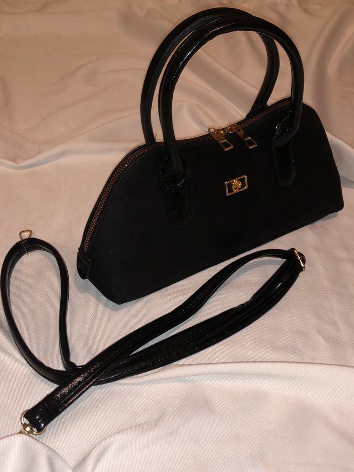 Siyah Süet Deri Fermuarlı Kadın Çantası