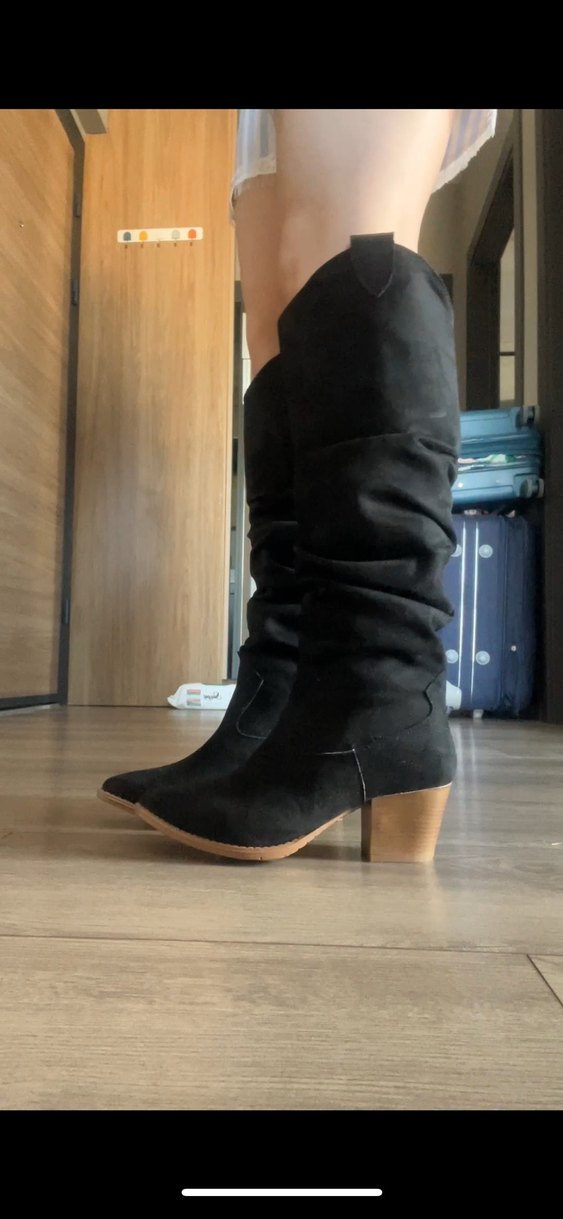Limoya Siyah Süet Diz Altı Kadın Çizme