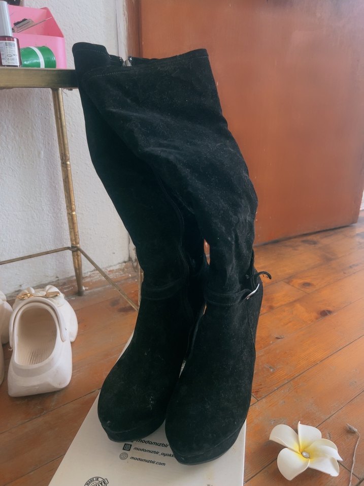 Siyah Süet Diz Boyu Kadın Çizme