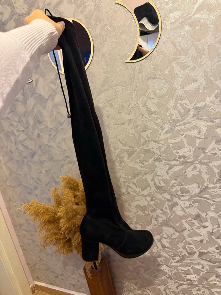 Siyah Süet Diz Üstü Topuklu Kadın Çizme