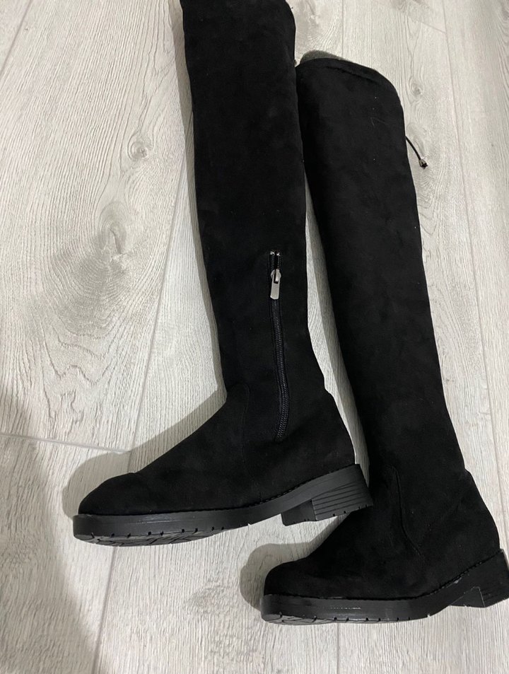 Siyah Süet Dizüstü Fermuarlı Çizme