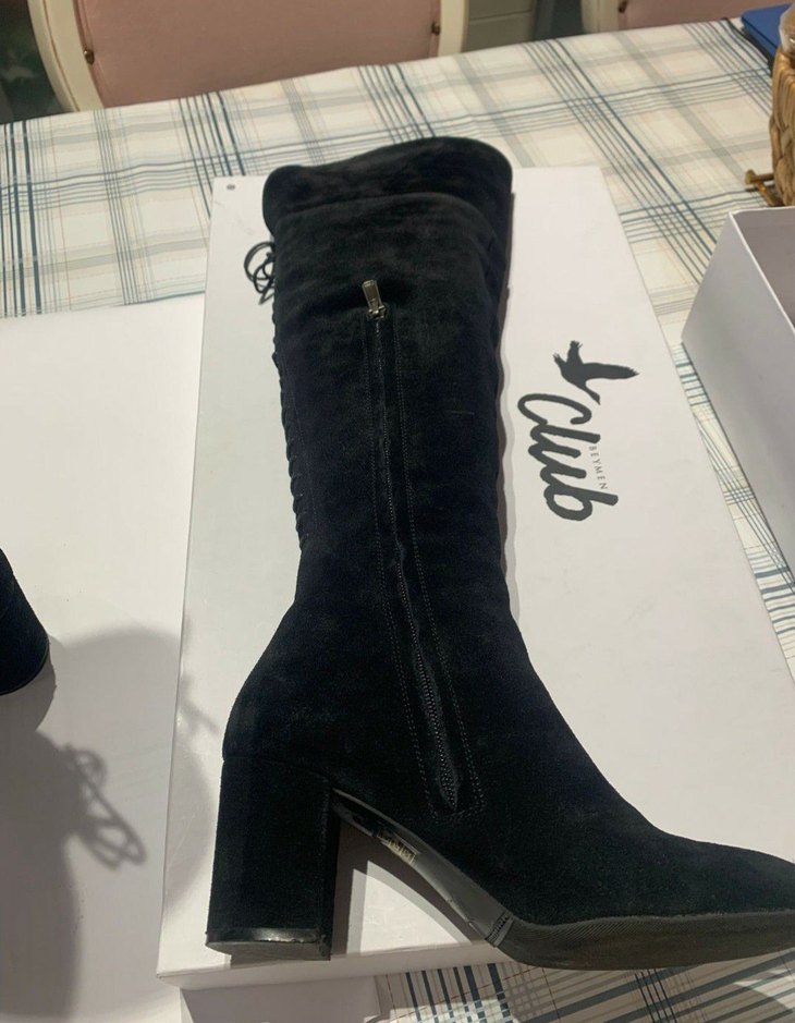 Siyah Süet Dizüstü Fermuarlı Topuklu Çizme