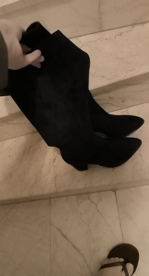 Siyah süet dizüstü botlar, ince stiletto topuklu ve desensiz tasarıma sahiptir. Cesur ve zahmetsiz şıklık için uygundur, günlük kullanıma idealdir. 39 numara fakat dar kalıp 37 numara uyumlu
