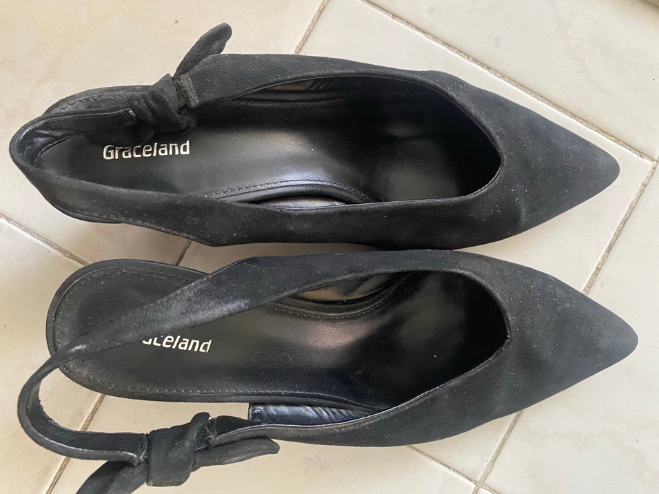 Siyah süet dolgu topuklu kadın abiye ayakkabı, tokalı detaylı. Romantik akşamlar için minimalist gotik tarzda.
