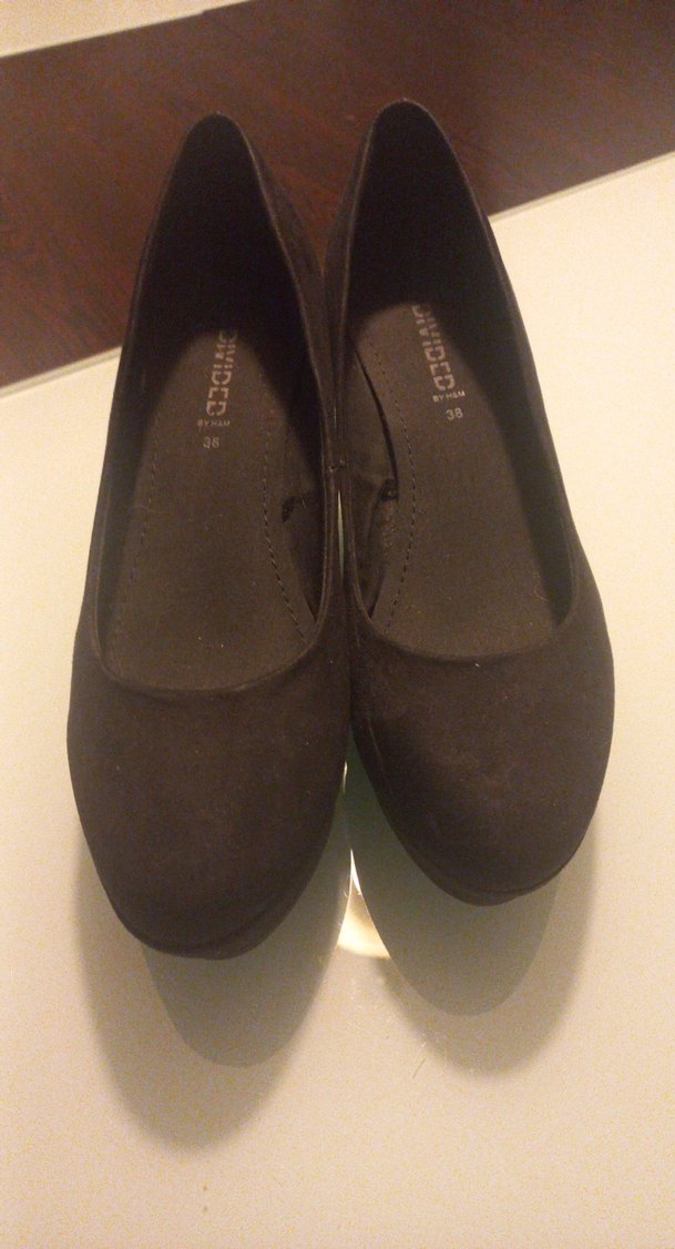 Siyah süet malzemeden, dolgu topuklu ve tokalı kadın klasik ayakkabısı. Minimalist gotik tarzda, romantik buluşmalar için uygundur.