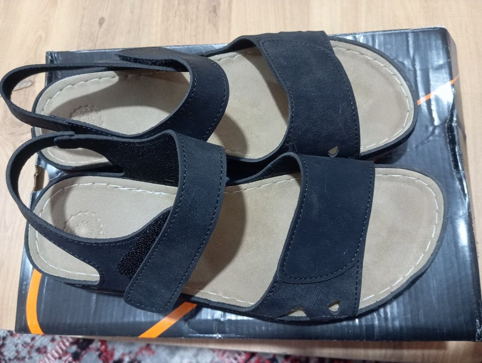 Siyah süet malzemeden yapılmış, dolgu topuklu ve tokalı bantlara sahip kadın sandaletleri. Günlük rahat sokak stili için uygun, desen içermeyen minimalist tasarım.