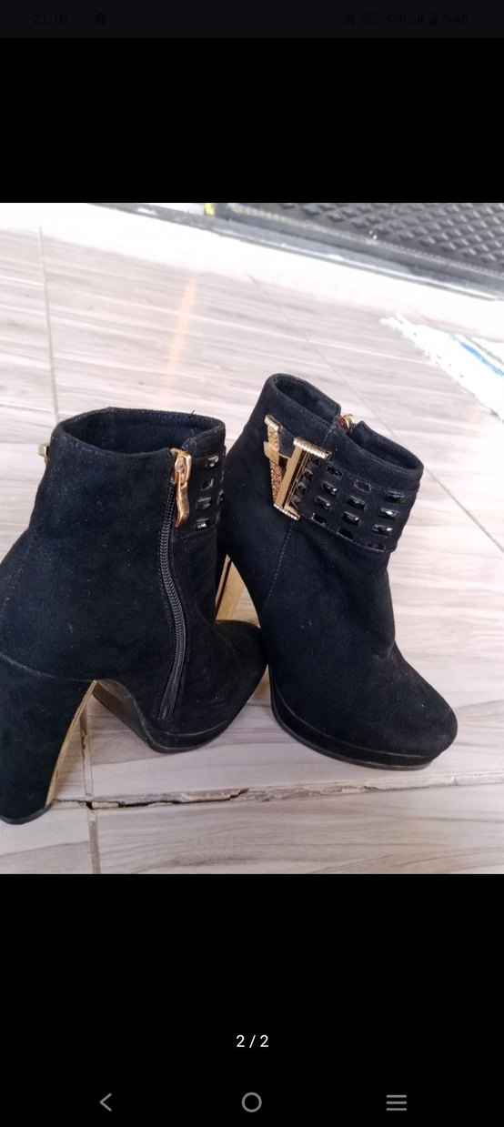 Siyah süet dolgu topuklu, tokalı ve desenli detaylara sahip günlük kullanıma uygun, trend goth tarzında botlar.
