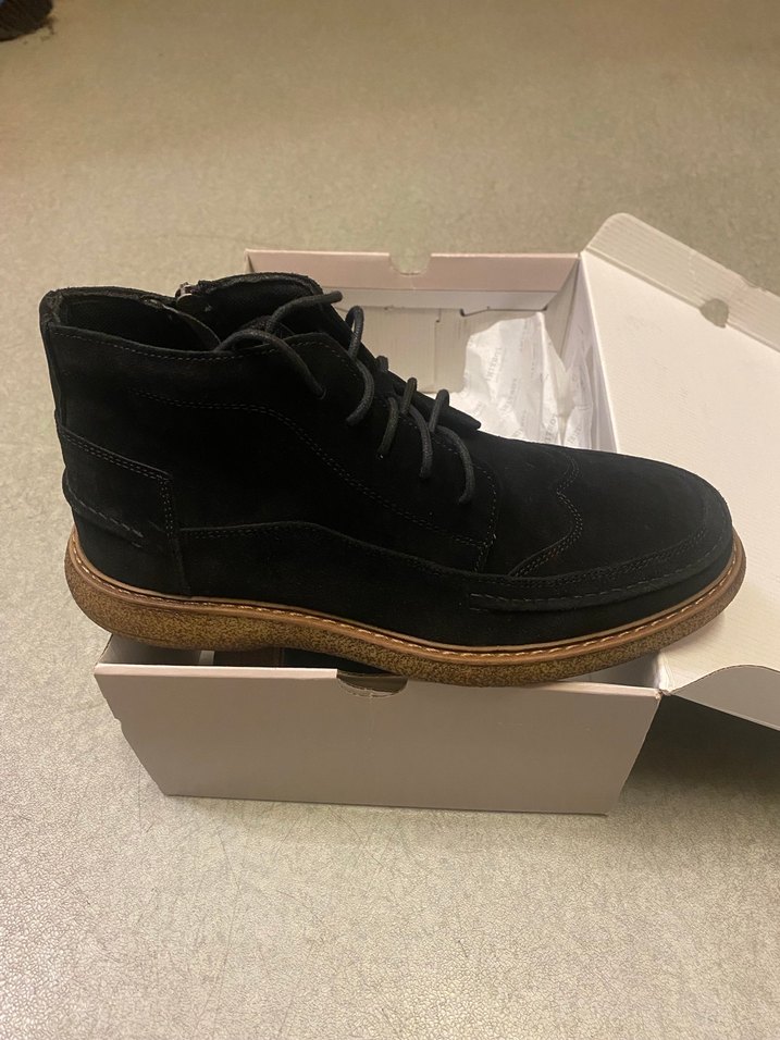 Siyah süet erkek bot, tokalı tasarımıyla ofis ve sokak stiline uygun. Trendy ve gündelik kullanıma uygun, desensiz koyu renkli.
