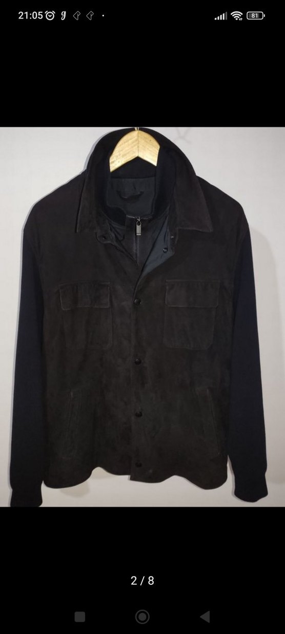Siyah süet erkek ceket, düğmeli önü ve keskin yaka detayıyla regular fit olarak tasarlanmıştır. Uzun kollu ve midi boy, günlük sokak stiline uygundur. kolları ve arka kısmı dokuma detaylı koyu kahve rengi