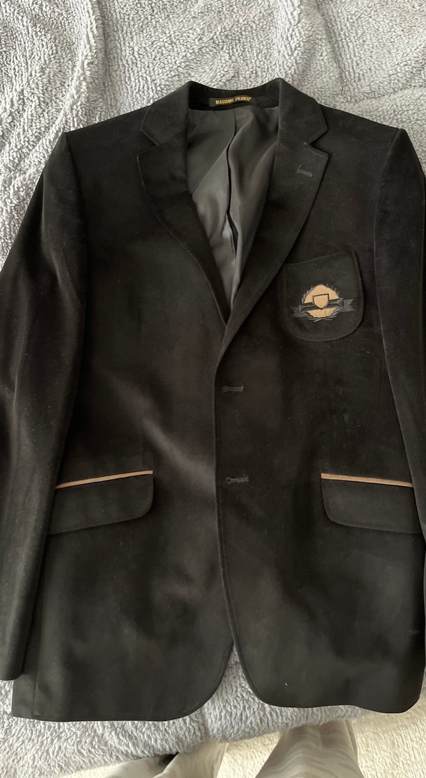 Bu erkek ceketi, siyah yumuşak süetten yapılmış, düğmeli ve kesikli yaka detayına sahiptir. Normal kesim ve uzun kolludur, iş ve günlük tarz için uygundur. Ön cepler ve göğüs cebinde ince bir amblem bulunur.