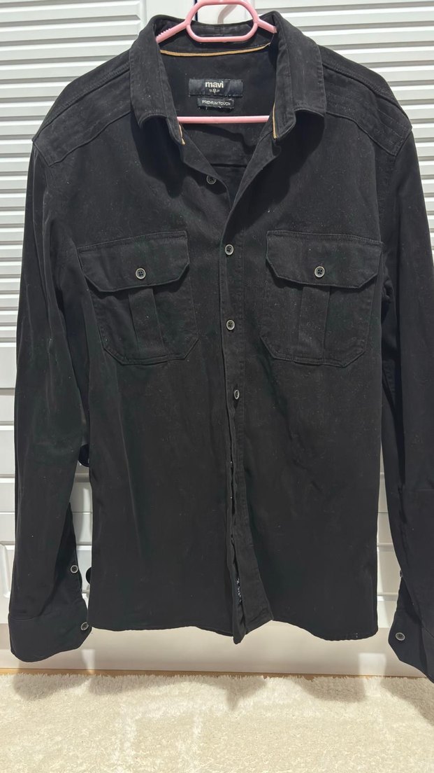 Uzun kollu, düğmeli siyah süet erkek gömlek. Notlu yaka ve normal kesime sahip, iki cep detaylı, desen içermeyen günlük rahat stil gömlek. Mavi marka s beden