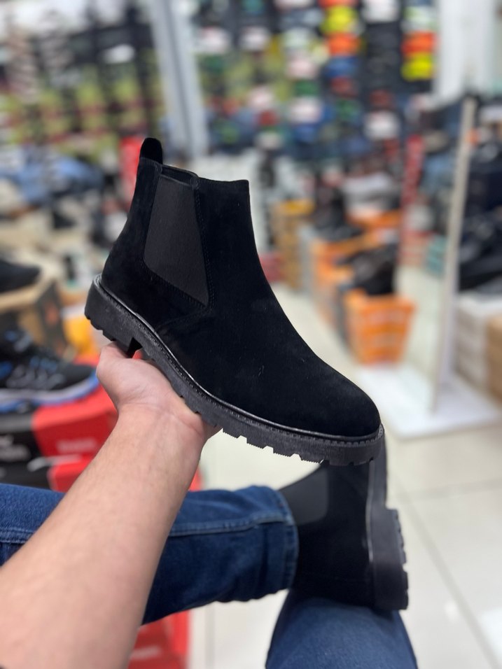 Siyah süet malzemeden yapılmış, erkek botu. Günlük kullanıma uygun, rahat ve şık sokak tarzı bot.