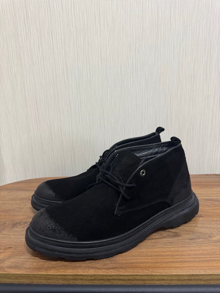 Siyah süet malzemeden üretilmiş, desensiz erkek botları. Sokak stili ve trend görünümüyle günlük kullanıma uygundur. İnci marka hakiki deridir