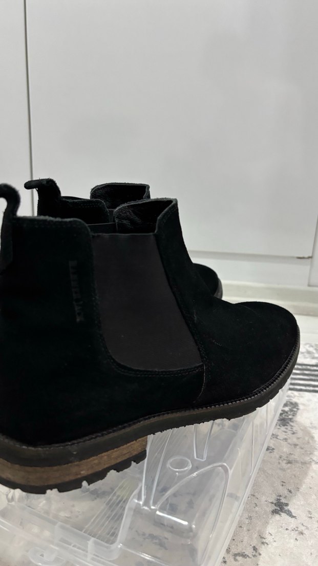 Siyah erkek botları, sokak tarzına uygun sade ve desensiz yüzeye sahiptir. Süet kumaş ön kısmı kendinden parlak