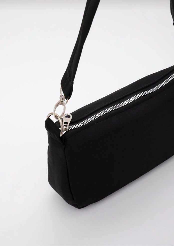 Siyah süet malzemeden fermuarlı, minimalist tasarımlı kadın çantasıdır. Günlük kullanıma uygun, parlak dokusu sokak stilini yansıtır.