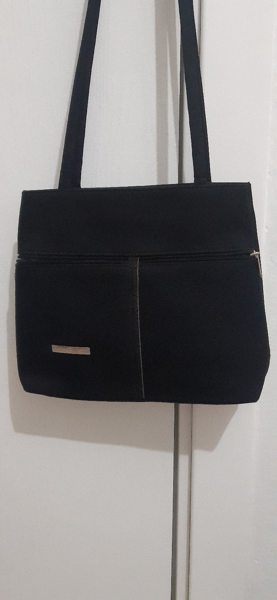 Siyah süet kadın çantası, fermuarlı ve minimalist tasarıma sahiptir. Düz ve goth tarzıyla gündelik kullanıma uygundur.