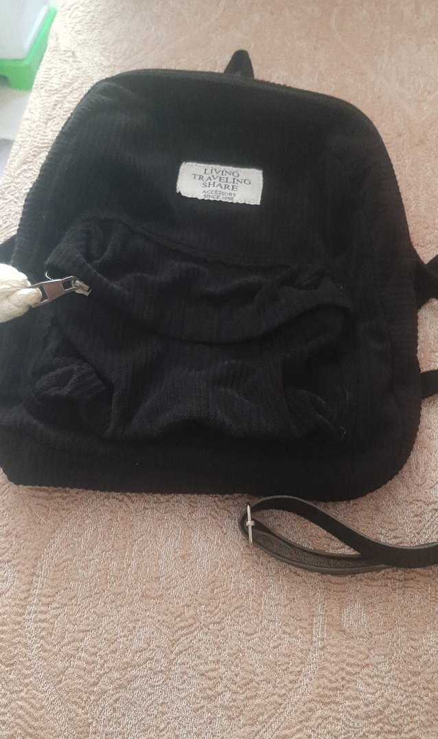 Siyah Süet Fermuarlı Kadın Sırt Çantası