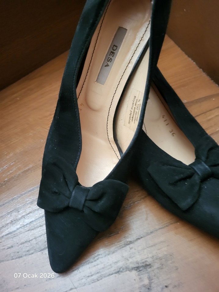 Siyah Süet Fiyonk Detaylı Topuklu Kadın Ayakkabı
