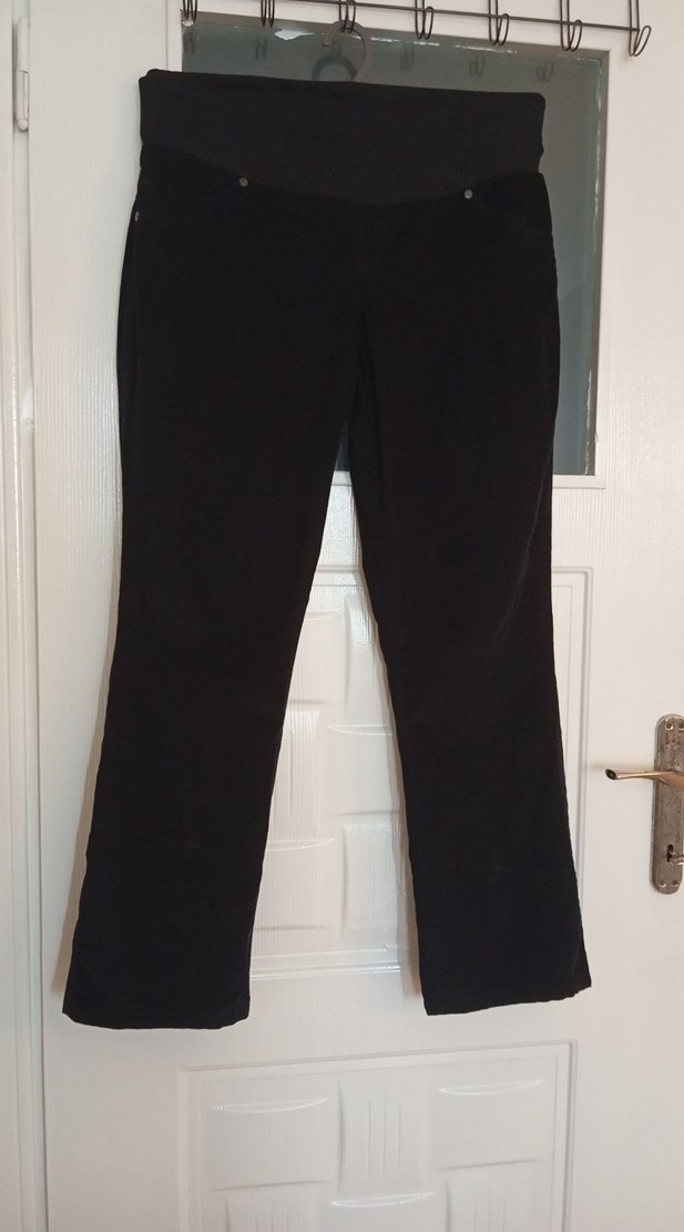 Anne marka Siyah süet hamile pantolonu, normal boy ve regular fit. Tokalı detayları ile ofis ve günlük kullanıma uygundur.