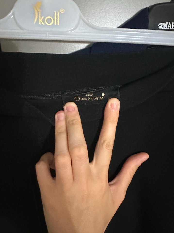 Siyah süet hamile pantolonu, fitted kesim, notched lapel ve fermuarlı detaylı. Midi boy, uzun kollu ve baskılı tasarımlı, ofis ve günlük kullanıma uygun.