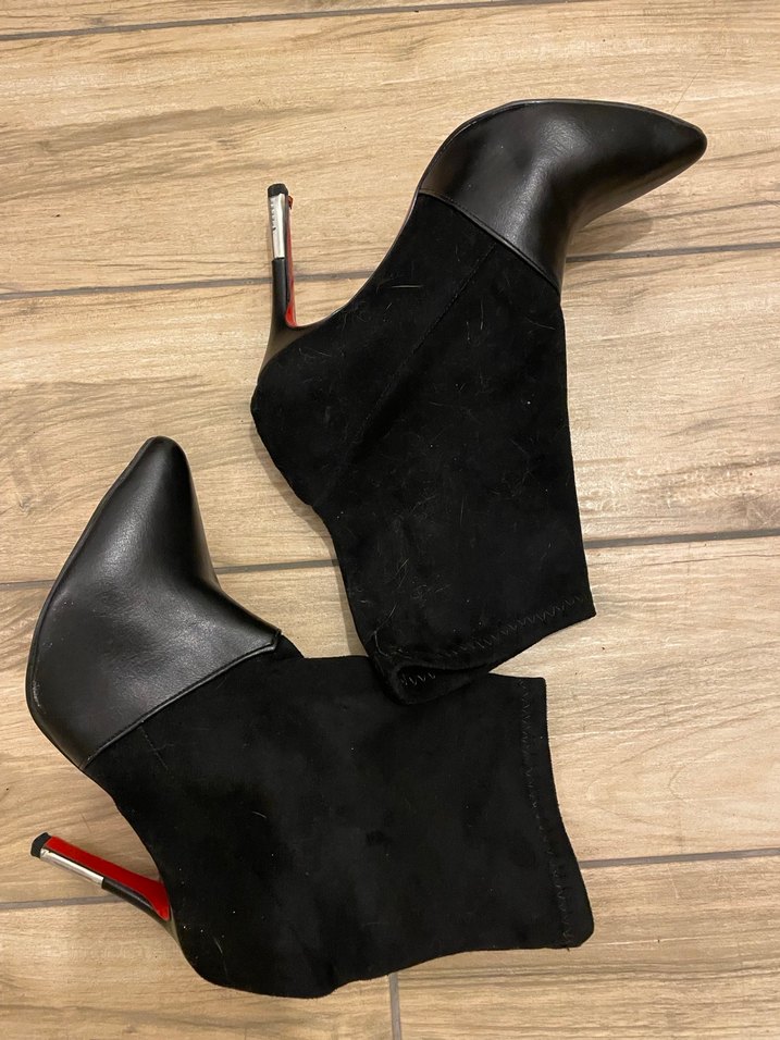 Siyah süet görünümlü ve ince topuklu botlar, romantik akşamlar için çağdaş Paris tarzını yansıtıyor. Sibel durmaz markalı -37 numara