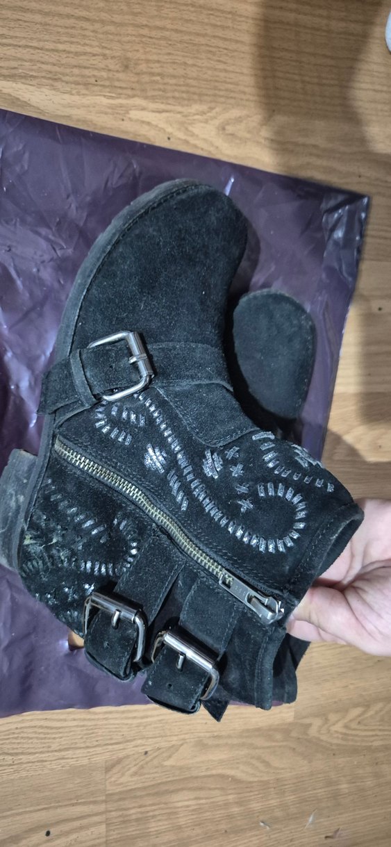Siyah Süet Kadın Bot, Tokalı, Nakışlı