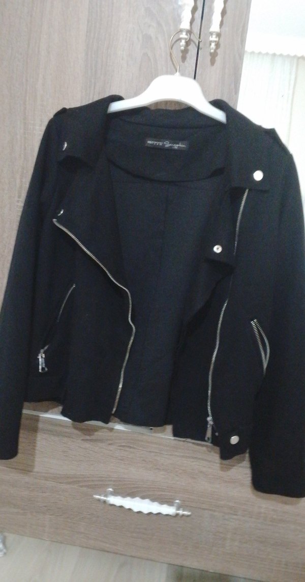 Siyah süet kadın deri ceket, dar kesim ve fermuarlı ön detaylı. Notch yaka ve kayışlı kollara sahip, trend günlük stil için uygun. defosu yok yeni gibi