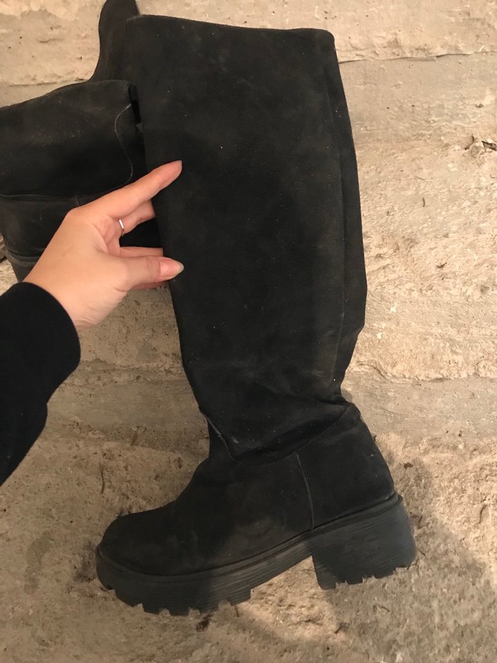 Siyah Süet Kadın Dizüstü Bot Kürklü