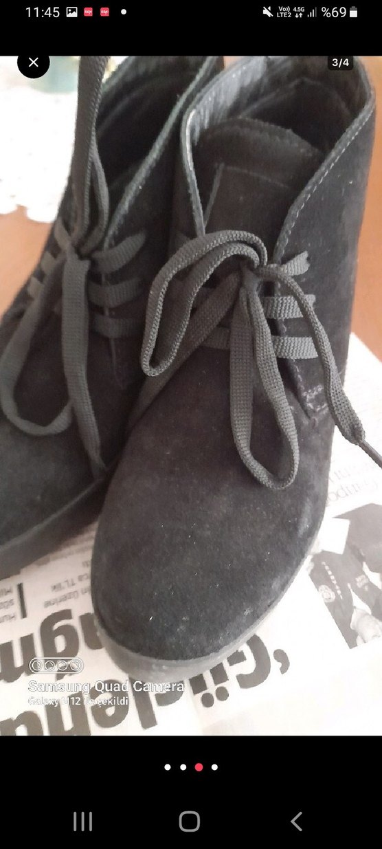 Siyah süet malzemeden, dolgu topuklu ve tokalı kadın botu. Günlük kullanıma uygun, trend sokak stiline uygun şık tasarım.