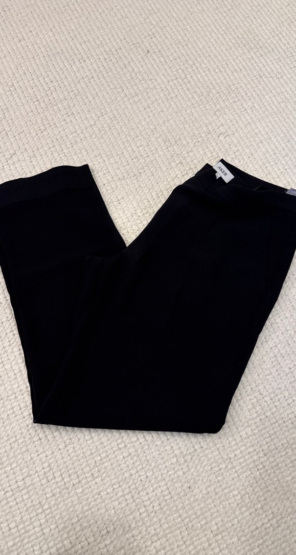 Siyah süet kumaştan yapılmış, normal boy midi uzunluğunda, rahat kesim kadın pantolon. Ofis için uygun, sade ve konforlu tarz sunar.