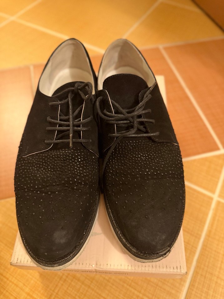 Siyah Süet Kadın Oxford Ayakkabı