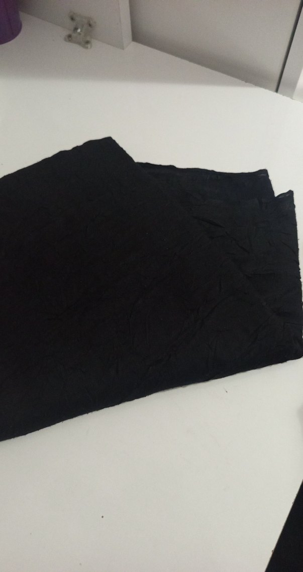 Siyah süet kumaştan yapılmış, minimalist ve goth tarzını yansıtan, zahmetsiz şıklık sunan kadın şalı.