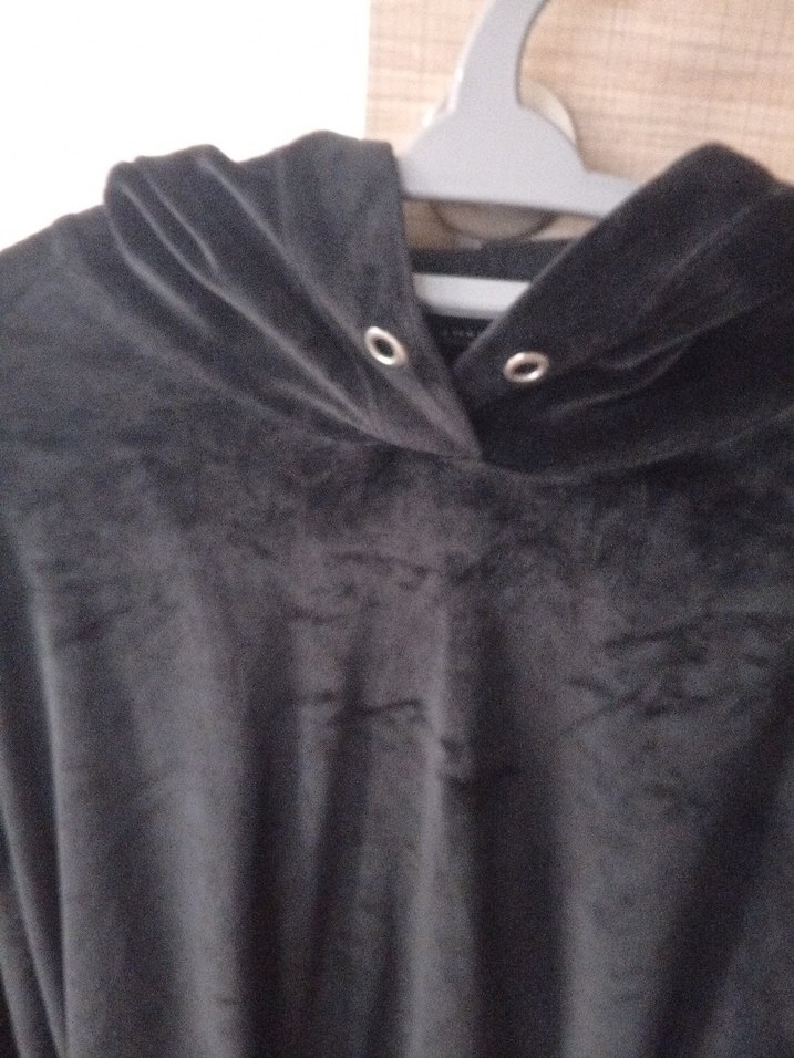 siyah süet kadın sweatshirt. Uzun kollu, bol kesim ve rahat kullanıma uygun. crop tarzı altı lastikli